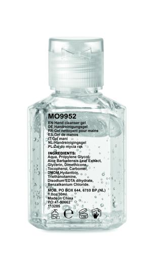 Hand cleanser gel in PET bottle with flip cap. Capacity 30 ml. Non- alcohol formulation. This product is classified as a cosmetic item.