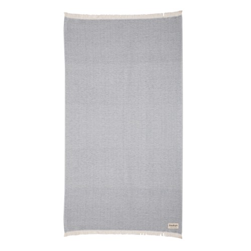 Our most luxurious and versatile towel. The perfect travel companion in any circumstance. This towel contains 22% recycled cotton and is super soft and silky to the touch. With AWARE™ tracer that validates the genuine use of recycled cotton. You can use it for almost anything, such as the beach, travelling, sauna, swimming pool, camping, sports, as a beach towel, bath towel, scarf, pareo, yoga towel, blanket, as a wrap for your child - you name it. Perfect for sofas and dressing beds, the Hisako throws are also wonderful for sunbathing on or using as a machine-washable picnic blanket. These four seasons hammam towels are quick-drying, mould resistant and incredibly easy to clean making them a brilliant choice for allergy sufferers, red wine lovers and beachgoers. 2% of proceeds of each Impact product sold will be donated to Water.org. Machine washable. Made in Portugal.