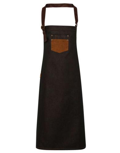 'DIVISION' WAXED LOOK DENIM BIB APRON WITH FAUX LEATHER