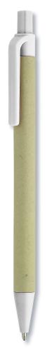 Push button ball pen with recycled paper barrel and PLA parts (in 100% biodegradable corn). Blue ink.