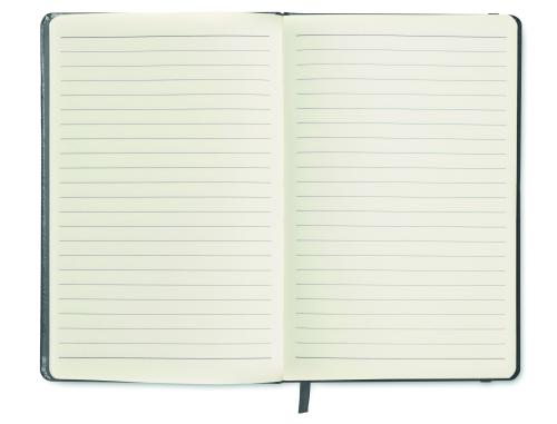 A5 notebook with hard PU cover. Casebound. 192 lined recycled paper pages (96 sheets). Matching elastic closure strap and ribbon page-marker. FSC®-certified | FSC MIX CREDIT, P7.1, FSC-C213206