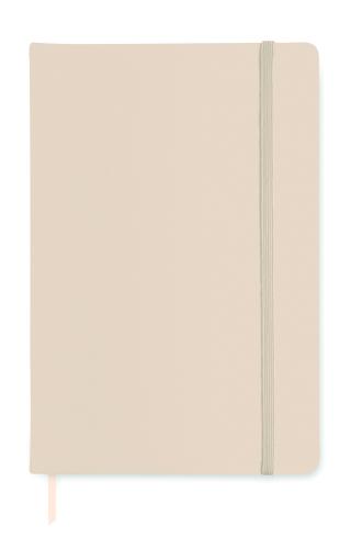 A5 notebook with hard PU cover. Casebound. 192 lined recycled paper pages (96 sheets). Matching elastic closure strap and ribbon page-marker. FSC®-certified | FSC MIX CREDIT, P7.1, FSC-C213206