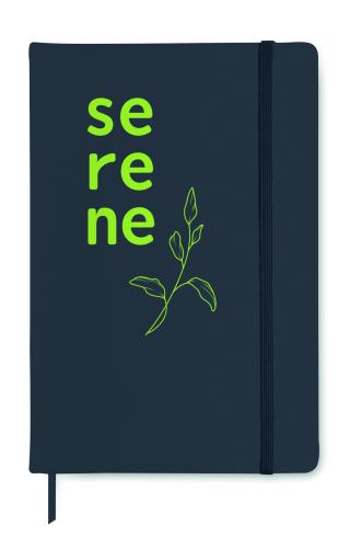 A5 notebook with hard PU cover. Casebound. 192 lined recycled paper pages (96 sheets). Matching elastic closure strap and ribbon page-marker. FSC®-certified | FSC MIX CREDIT, P7.1, FSC-C213206