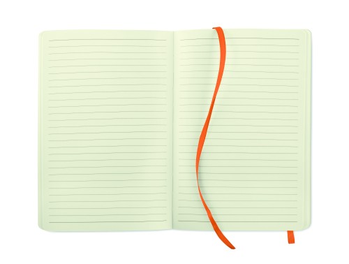 A5 notebook with soft recycled PU (81% recycled polyester and 19% PU) cover. Casebound. 160 lined pages (80 sheets recycle papers). Matching elastic closure strap and ribbon bookmark. Expandable inner pocket in the back. FSC®-certified | FSC MIX CREDIT, P7.1, FSC-C213206