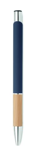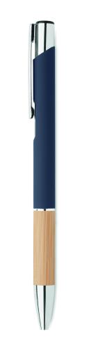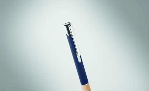 Push button pen in aluminium with bamboo grip. Blue ink.
