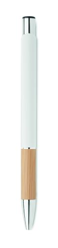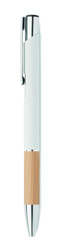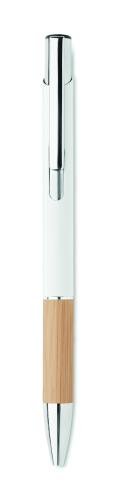 Push button pen in aluminium with bamboo grip. Blue ink.