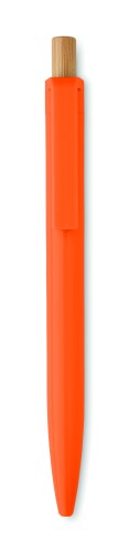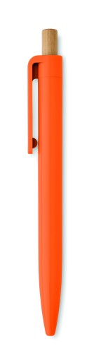 Ball pen in recycled ABS with bamboo push button. Blue ink.