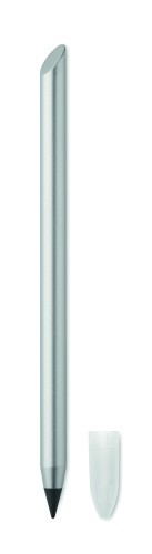Long lasting recycled aluminium inkless pen. The pen writes with the graphite tip that has a plastic protection cover.