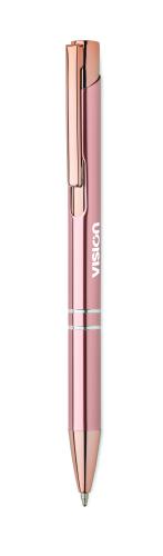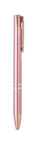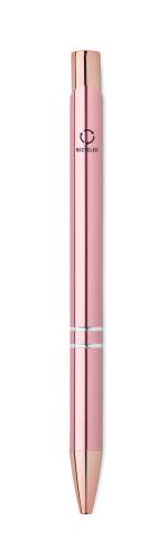 Push button pen in recycled aluminium. Blue ink.