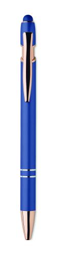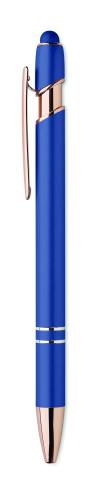 Recycled aluminium stylus push ball pen with rose gold details. Blue ink.