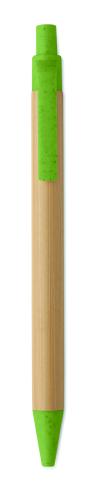 Push button ball pen with bamboo barrel and wheat straw (50%) and ABS plastic (50%) fittings. Blue ink. FSC 100% | N5.7 | FSC-C213206