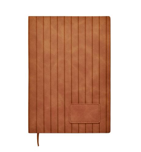 A5 notebook with soft smokey PU ribbed cover in 40% recycled post consumer and 60% PU with plain PU patch. 160 lined pages, 70gsm recycled paper (80 sheets). Matching colour polyester ribbon page marker. FSC®- certified | FSC MIX CREDIT, P7.1, FSC-C213206