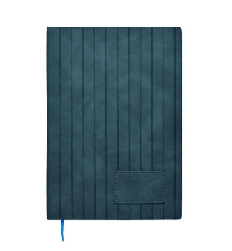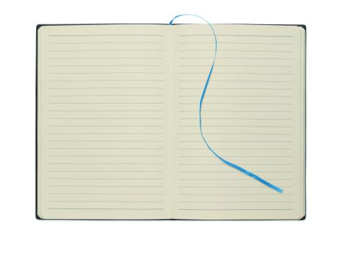 A5 notebook with soft smokey PU ribbed cover in 40% recycled post consumer and 60% PU with plain PU patch. 160 lined pages, 70gsm recycled paper (80 sheets). Matching colour polyester ribbon page marker. FSC®- certified | FSC MIX CREDIT, P7.1, FSC-C213206