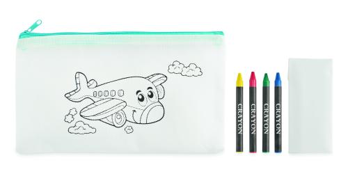 Non woven pencil case including 4 crayons.