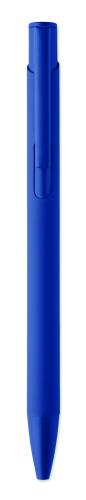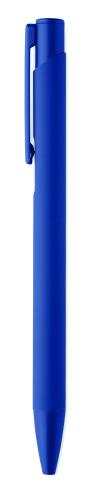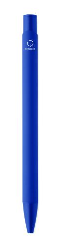 Push-type pen made of recycled aluminium with iron clip and colour rubberised barrel. Blue ink.