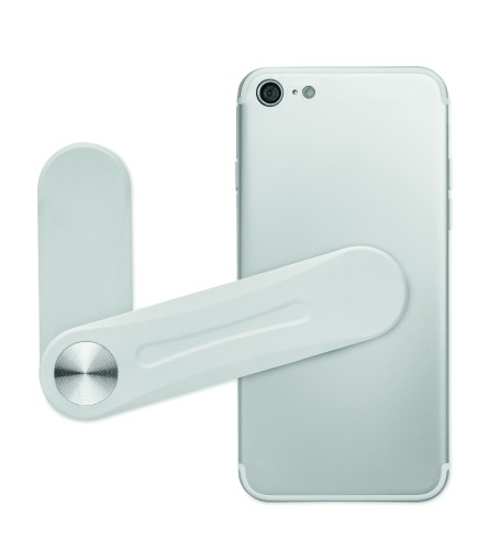 Magnetic ABS Phone holder with metal ring (3M sticker on the back). Attachable in laptops.