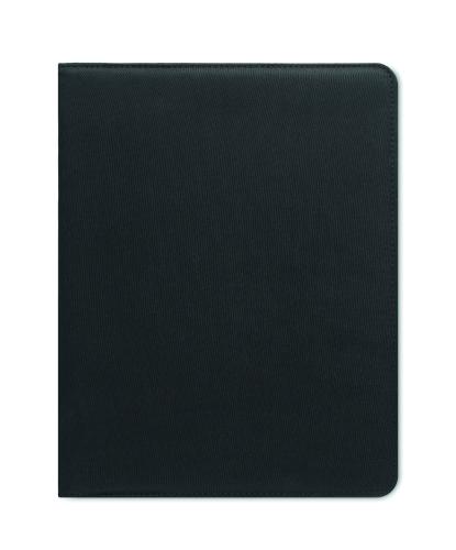 A4 conference folder with RPET cover. 20 lined bamboo paper sheets notepad. Shaped inner pocket. 2 card holders. Pen holder. Bamboo is a natural product, there may be slight variations in colour and size per item, which can affect the final decoration outcome.