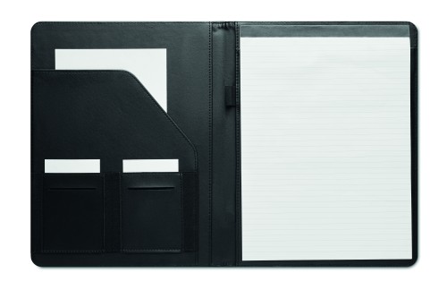 A4 conference folder with RPET cover. 20 lined bamboo paper sheets notepad. Shaped inner pocket. 2 card holders. Pen holder. Bamboo is a natural product, there may be slight variations in colour and size per item, which can affect the final decoration outcome.