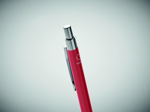 Push button ball pen in recycled aluminium. Blue ink.