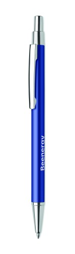Push button ball pen in recycled aluminium. Blue ink.