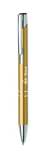 Push button ball pen in recycled aluminium. Blue ink.