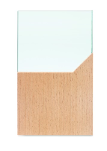 Crystal award or memorial plaque on a beech wooden base in a gift box.