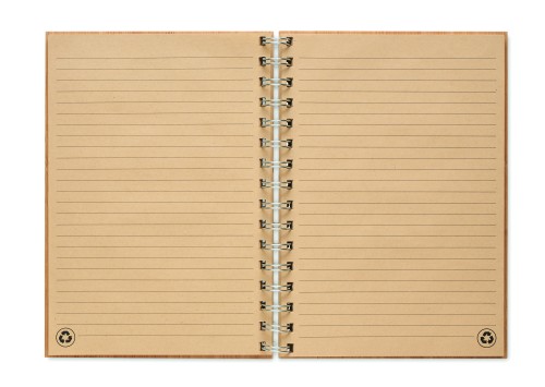 Bamboo cover notebook. Twin-wire ring bound, 140 lined kraft paper pages (70 sheets). Bamboo is a natural product, there may be slight variations in colour and size per item, which can affect the final decoration outcome.