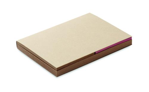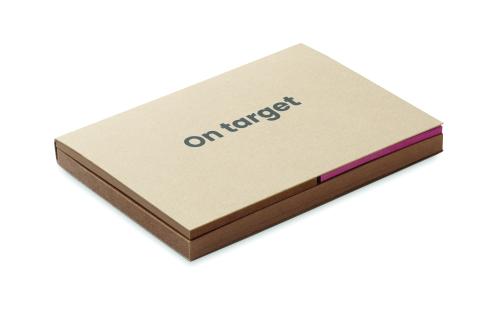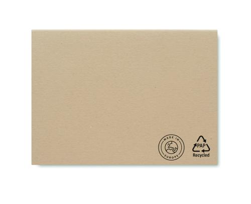 2-piece sticky note memo pad (50 sheets)with recycled paper cover. Sticky notes pads (25 sheets) and 3 assorted colours page markers. Made in EU.