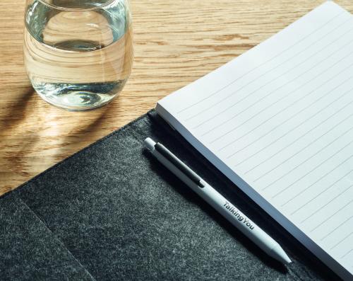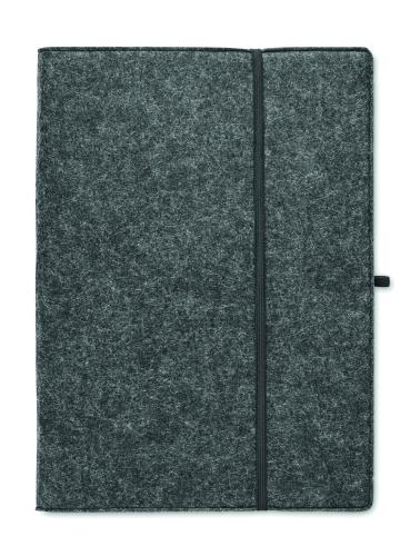 A4 conference folder in RPET felt. 100 lined recycled paper sheets notepad with elastic pen holder.