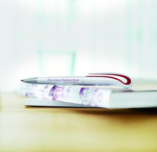 Twist action ball pen in ABS with blue ink.