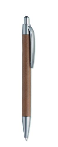Push type ball pen with recycled paper barrel and ABS fittings. Blue ink.