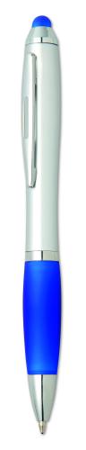 Twist action ball pen in ABS with stylus soft grip and matching tip. Blue ink