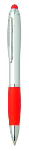 Twist action ball pen in ABS with stylus soft grip and matching tip. Blue ink