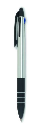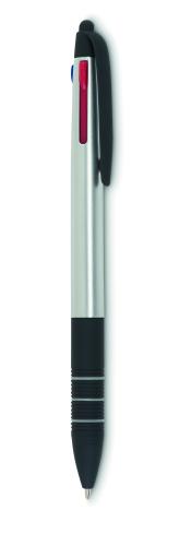 ABS pen with stylus and 3 ink colours: red, blue and black.