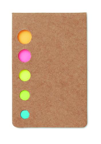 5 assorted colours in recycled paper page markers pad.