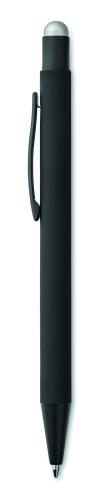 Push button stylus pen in aluminium. When the logo is engraved on to the barrel, the colour revealed matches the colour of the touch tip. Blue ink.