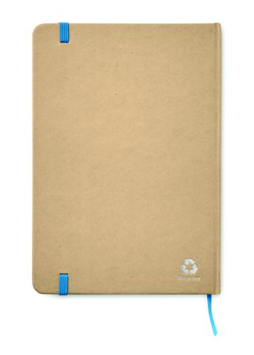 A5 notebook with hard recycled carton cover. Casebound. 160 lined recycled paper pages (80 sheets). Elastic closure strap, ribbon bookmark. FSC®-certified | FSC MIX CREDIT, P7.1, FSC-C213206