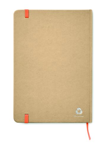A5 notebook with hard recycled carton cover. Casebound. 160 lined recycled paper pages (80 sheets). Elastic closure strap, ribbon bookmark. FSC®-certified | FSC MIX CREDIT, P7.1, FSC-C213206