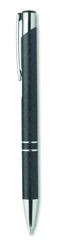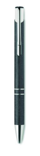 Push button ball pen in 50% wheat straw and 50% ABS material with silver fittings. Blue ink.