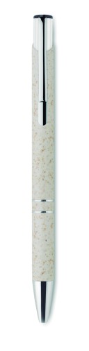 Push button ball pen in 50% wheat straw and 50% ABS material with silver fittings. Blue ink.