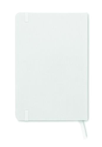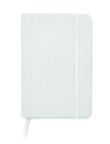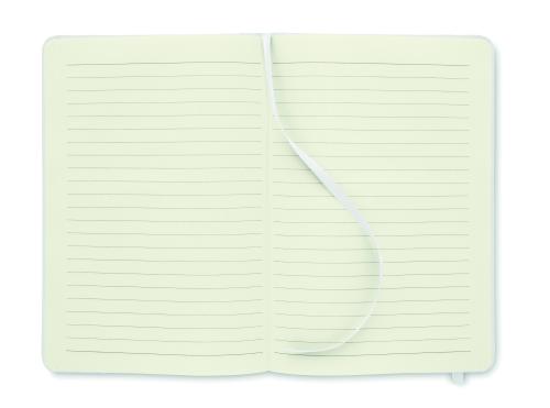 A5 notebook with hard 600D RPET cover. Casebound. 160 lined recycled paper pages (80 sheets). Matching elastic closure strap and ribbon bookmark. FSC®-certified | FSC MIX CREDIT, P7.1, FSC-C213206