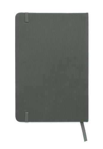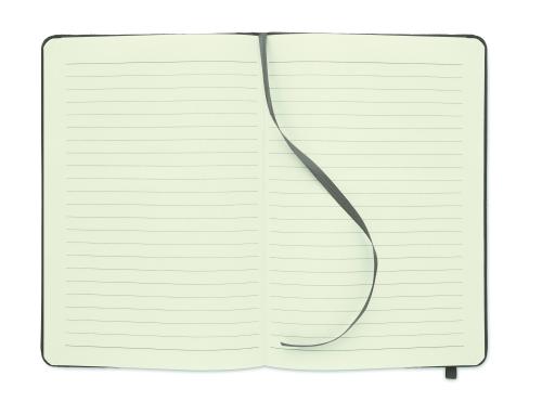 A5 notebook with hard 600D RPET cover. Casebound. 160 lined recycled paper pages (80 sheets). Matching elastic closure strap and ribbon bookmark. FSC®-certified | FSC MIX CREDIT, P7.1, FSC-C213206