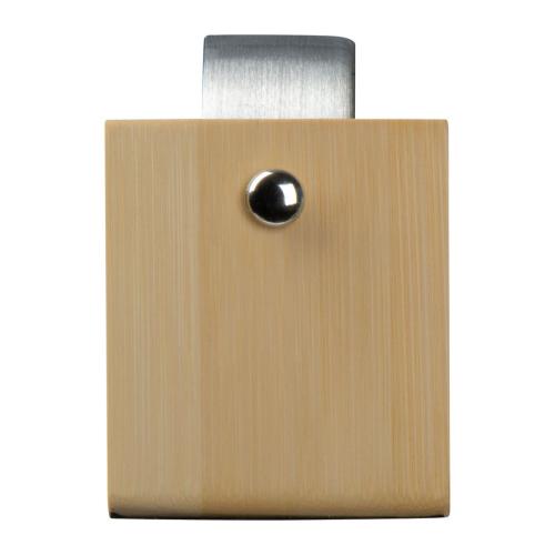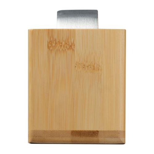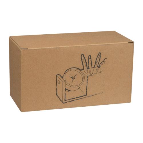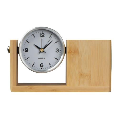 Elegant, swivelling table clock made of aluminium, integrated in a natural-coloured bamboo base with pen quiver.