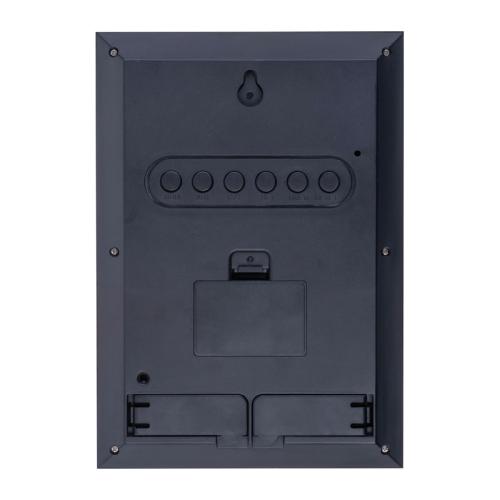 Bamboo desk clock with display for time, date, and temperature, operates with 2 AAA batteries, not included in the package. The housing features an elegant bamboo front, making it a perfect fit for any desk or bedside table.