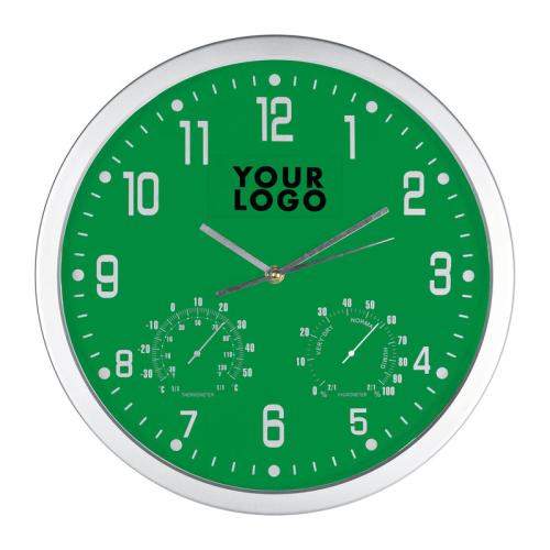 Exclusive, pioneering CrisMa design wall clock, featuring hygrometer and thermometer.