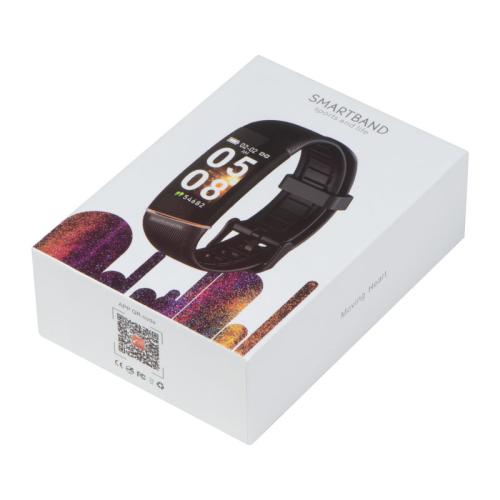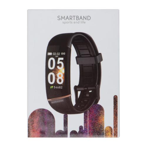 Smart fitness bracelet made of silicone with coloured illuminating display. Compatible with iOS 8.0, Android 5.1, Bluetooth 4.0 and above, easily rechargeable via USB plug. Features date and time display, pedometer, calorie display, range finder, heart rate monitor, training mode, etc. Evaluate your results through the App "My State."