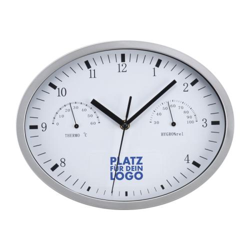 Fancy wall clock with hygrometer and thermometer, features a clever click system for fast and trouble-free printing.