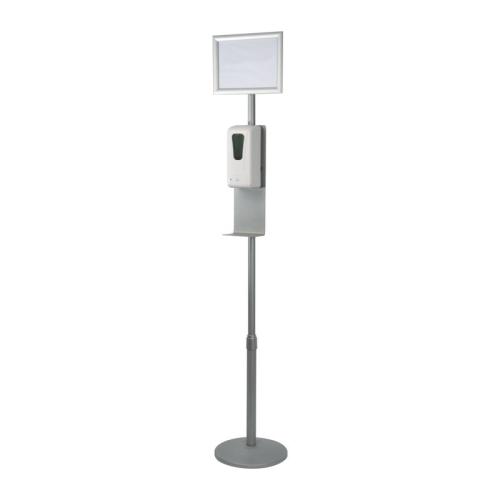 Disinfection column with a solid base, a telescopic rod (125-165 cm), an A4 sized logo space and a container with 1000 ml capacity for disinfectant gel or liquid, batteries are not included. Ideal for authorities, restaurants, shops or companies. You can print out your logo message yourself on A4 and customize it at any time.
