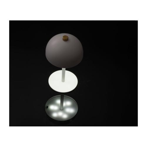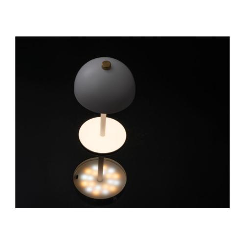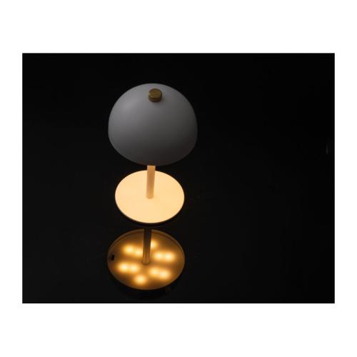 Stainless steel table lamp in the shape of a mushroom with rechargeable battery (1200 mAh output) and 20 LEDs. The lamp is infinitely dimmable and the light colour can be changed between warm, cold and natural light. Incl. C-type charging cable.