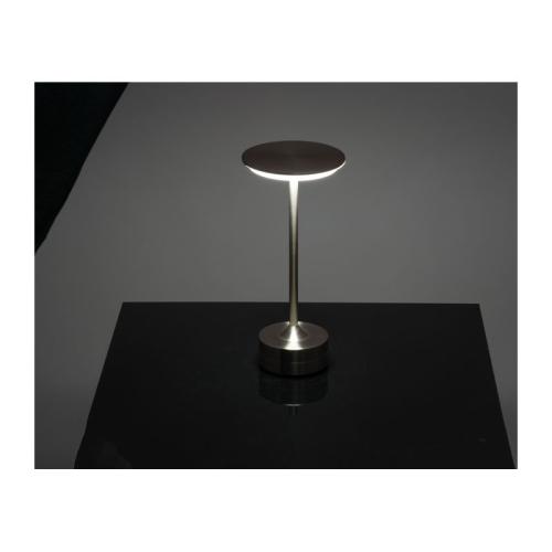 Stainless steel table lamp with rechargeable battery (800 mAh power). The lamp is dimmable and the light colour can be changed between warm and white light. Includes C-type charging cable.
